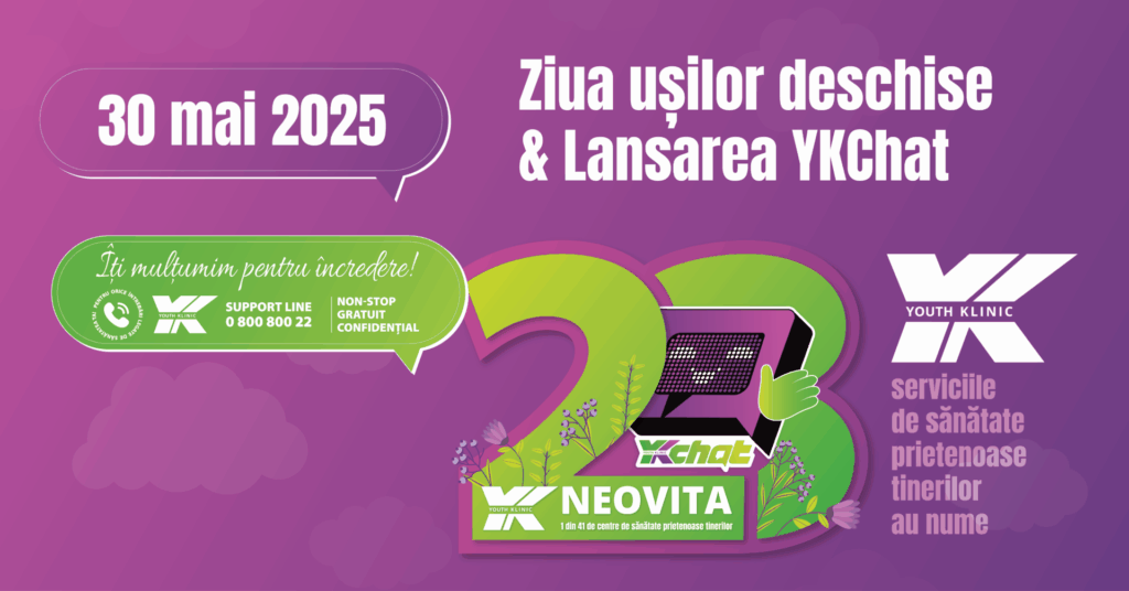 - Discuții individuale – pot accesa, în regim anonim, consilieri specializați care îi pot redirecționa pe tineri către Linia fierbinte (Support Line 0 800 800 22), fie către o clinică YK din cele 41 existente în republică (yk.md ), fie către o echipă mobilă YK sau către specialiști din rețeaua YK;