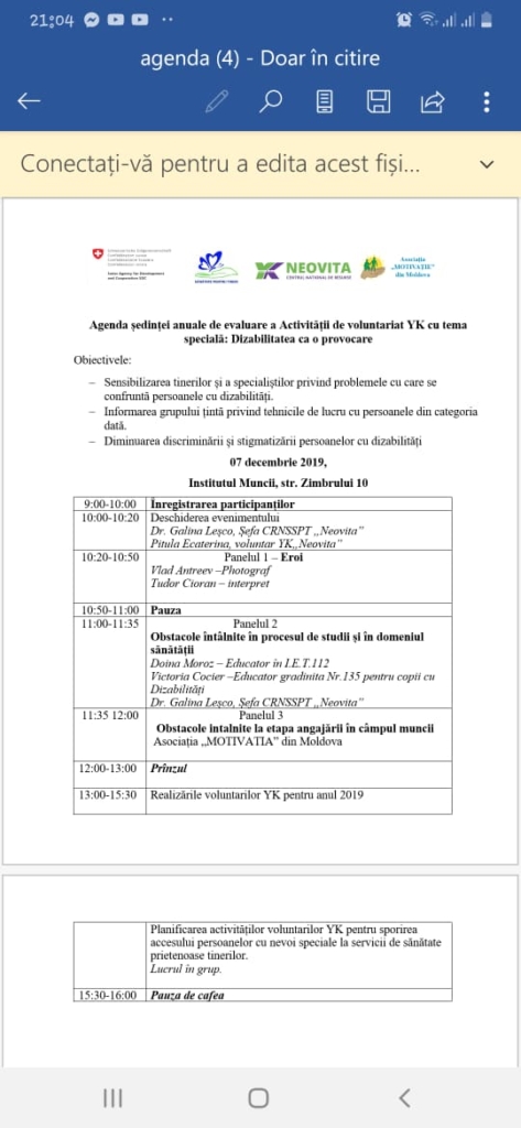 Victoria Boțan, specialistă în relații publice în cadrul Asociației „Motivație”, le-a prezentat voluntarilor exemple de provocări, dar și istorii de succes ale tinerilor cu dizabilități, angajați cu sprijinul asociației. Tânăra a menționat că dizabilitatea nu este un verdict de boală și acest lucru trebuie explicat tinerilor care, la rândul lor, vor transmite aceste atitudini copiilor lor. Mai mult, ”tinerii sunt viitorii angajatori, care nu ar trebui să ia decizii prin prisma stereotipurilor discriminatorii din societate”.